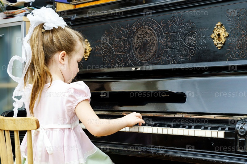 Милая маленькая девочка играет на фортепиано