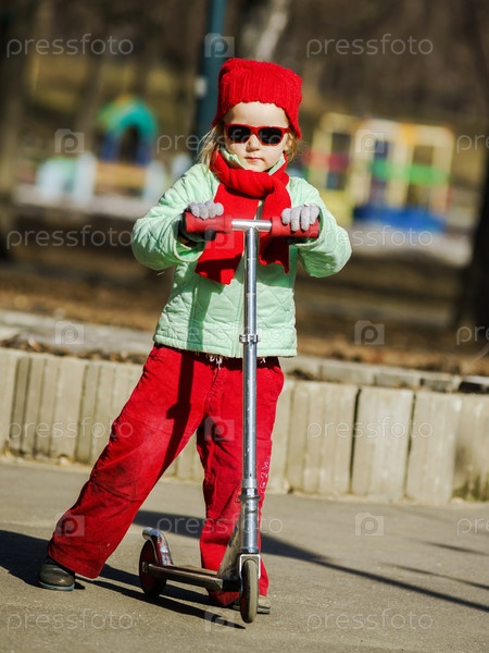 Милая маленькая девочка на самокате