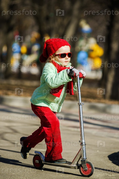 Милая маленькая девочка на самокате