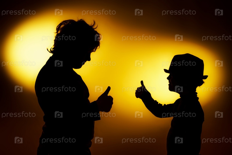Силуэты мальчиков на фоне оранжевого света