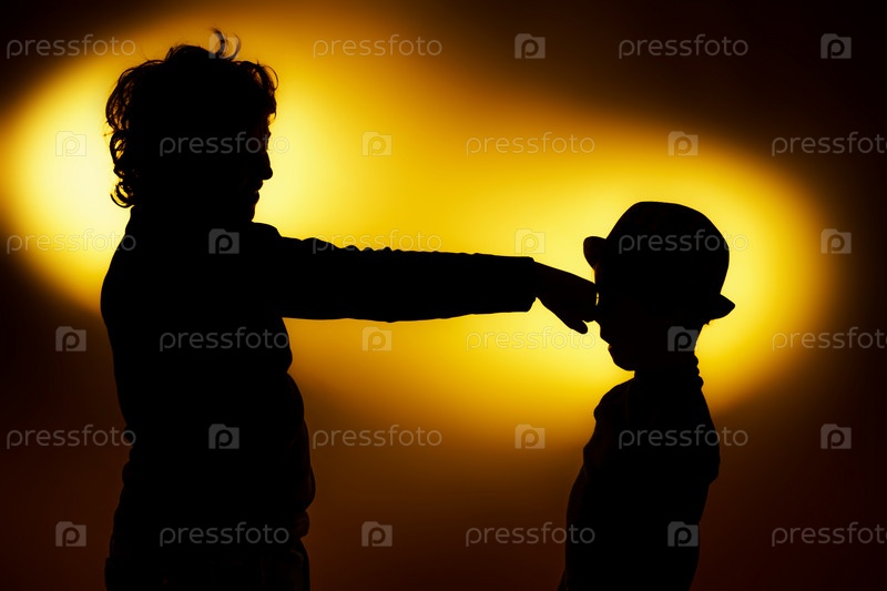 Силуэты мальчиков на фоне оранжевого света