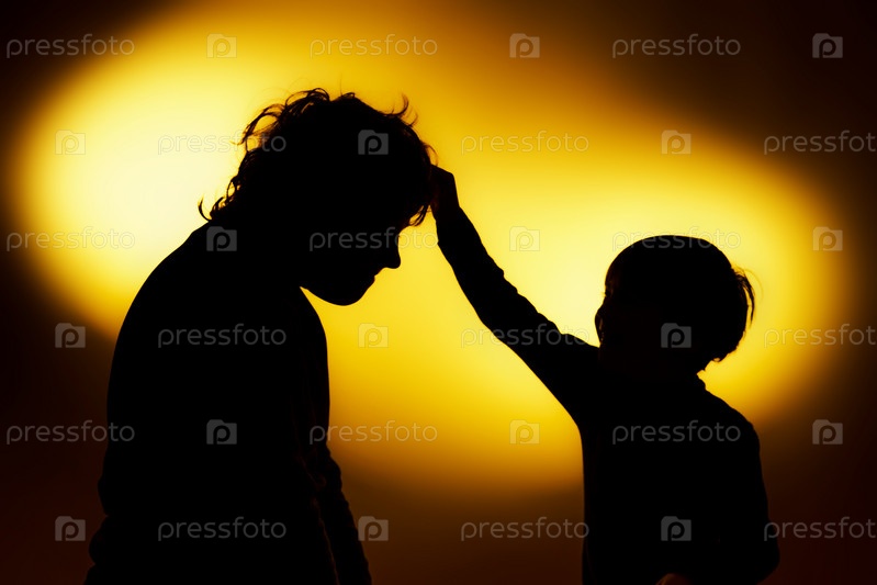 Силуэты мальчиков на фоне оранжевого света