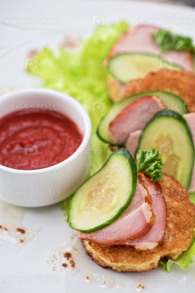 Блины с ветчиной и огурцом