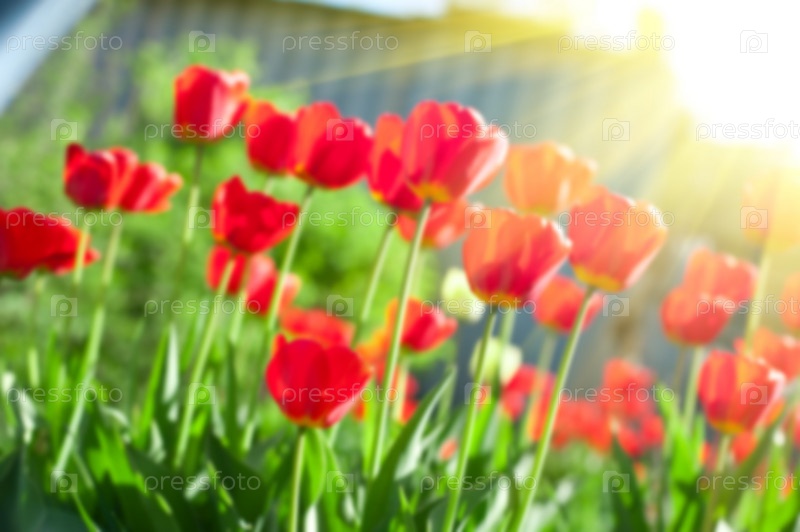 Размытый фон красные тюльпаны