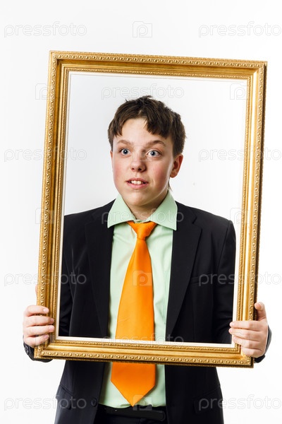 Подросток позирует с рамкой