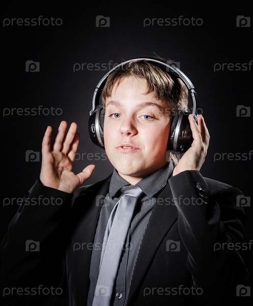 Подросток в костюме и наушниках