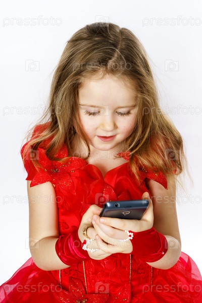 Милая маленькая девочка с телфоном