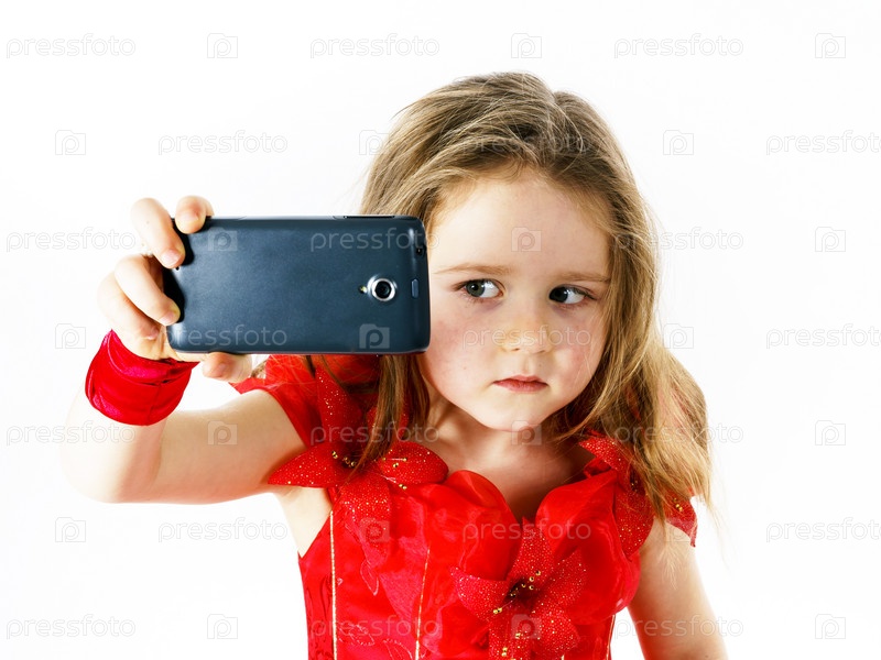 Милая маленькая девочка с телфоном