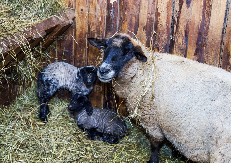 Ягненята с матерью-овцой