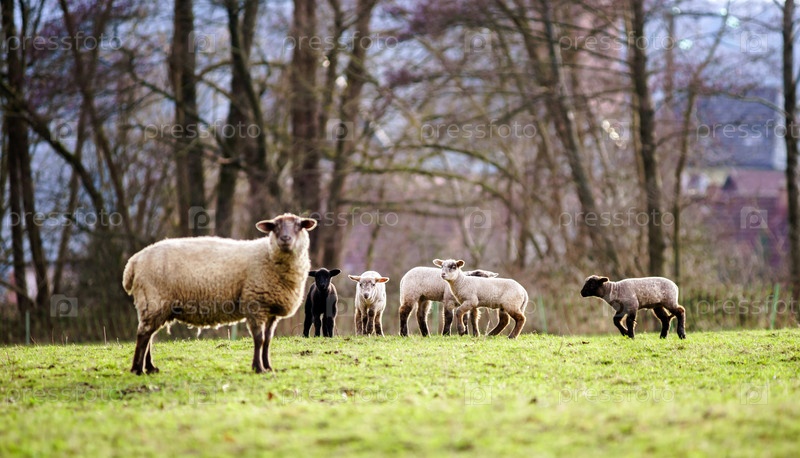 Симпатичные ягнята и взрослая овца