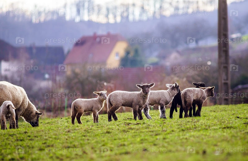 Симпатичные ягнята и взрослая овца