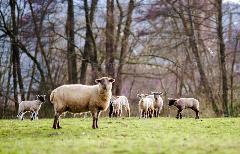 Симпатичные ягнята и взрослая овца