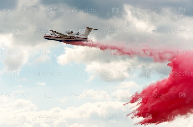 Летящий самолет-пожарный