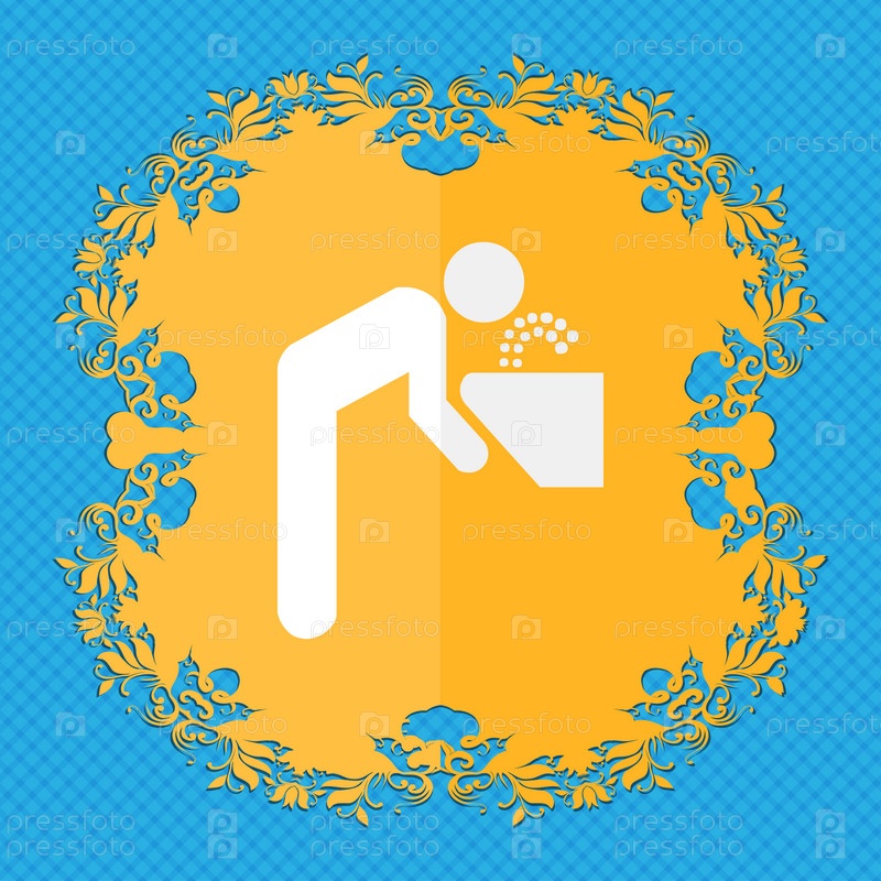Питьевой фонтан. Цветочный дизайн квартиры на синий абстрактный фон с местом для текста