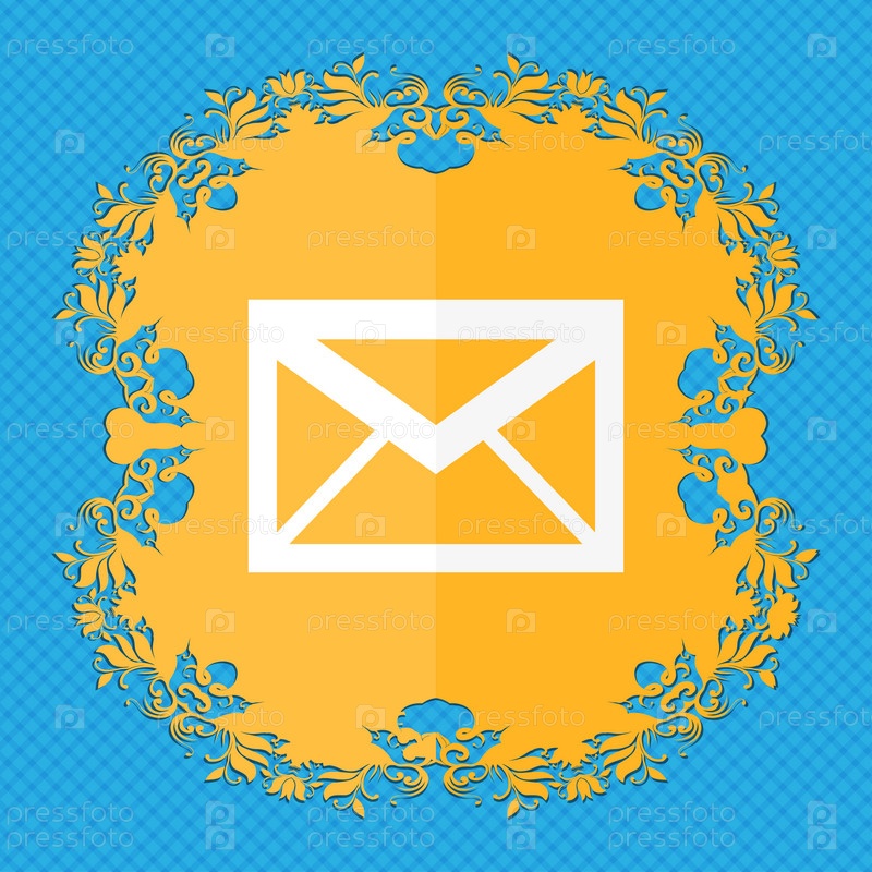 Значок «Почта». Символ конверта. Сообщение знак. кнопка навигации. Цветочный дизайн квартиры на синий абстрактный фон с местом для текста