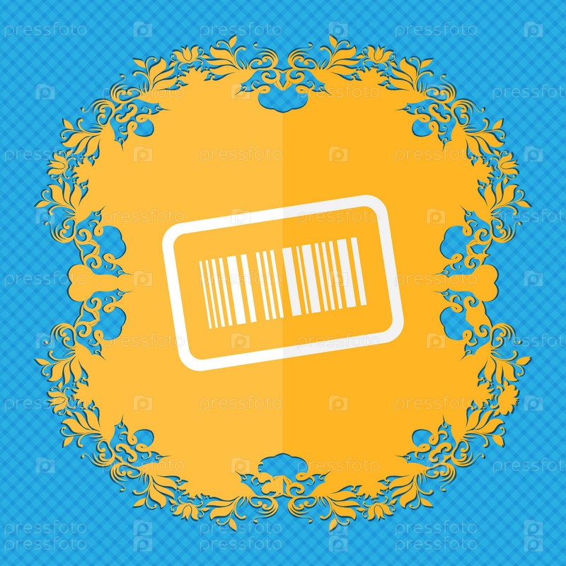 Штрих-код. Цветочный дизайн квартиры на синий абстрактный фон с местом для текста
