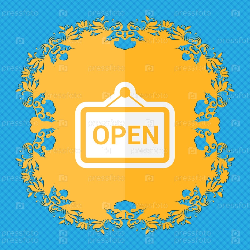Открыть. Цветочный дизайн квартиры на синий абстрактный фон с местом для текста