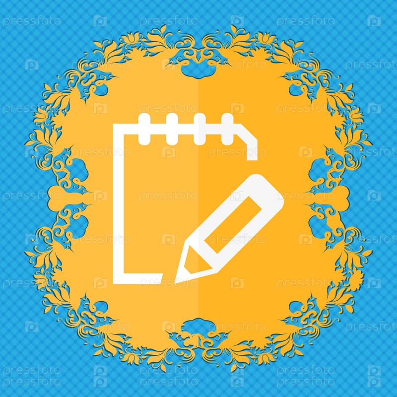 Измените знак значок документа. Цветочный дизайн квартиры на синий абстрактный фон с местом для текста
