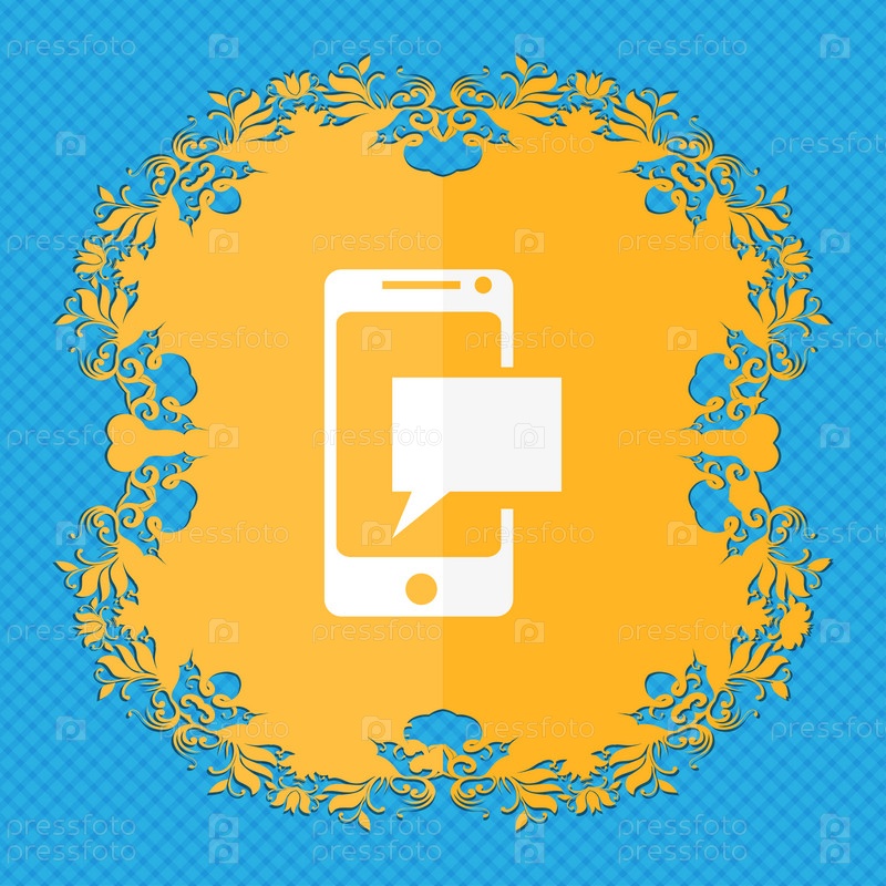 Иконка Почта. Символ конверта. СМС-сообщения знак. Кнопка навигации письма. Цветочный дизайн квартиры на синем абстрактном фоне с местом для текста