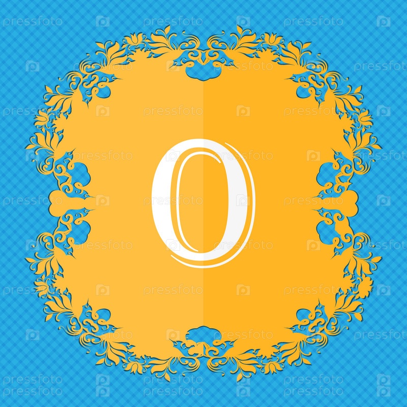 Число ноль значок знак. Цветочный дизайн квартиры на синий абстрактный фон с местом для текста