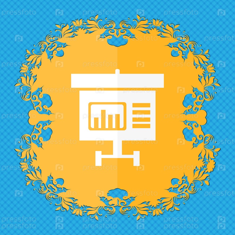 Граф значок знак. Цветочный дизайн квартиры на синий абстрактный фон с местом для текста