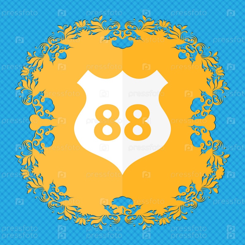 Маршрут 88 шоссе значок знак. Цветочный дизайн квартиры на синий абстрактный фон с местом для текста