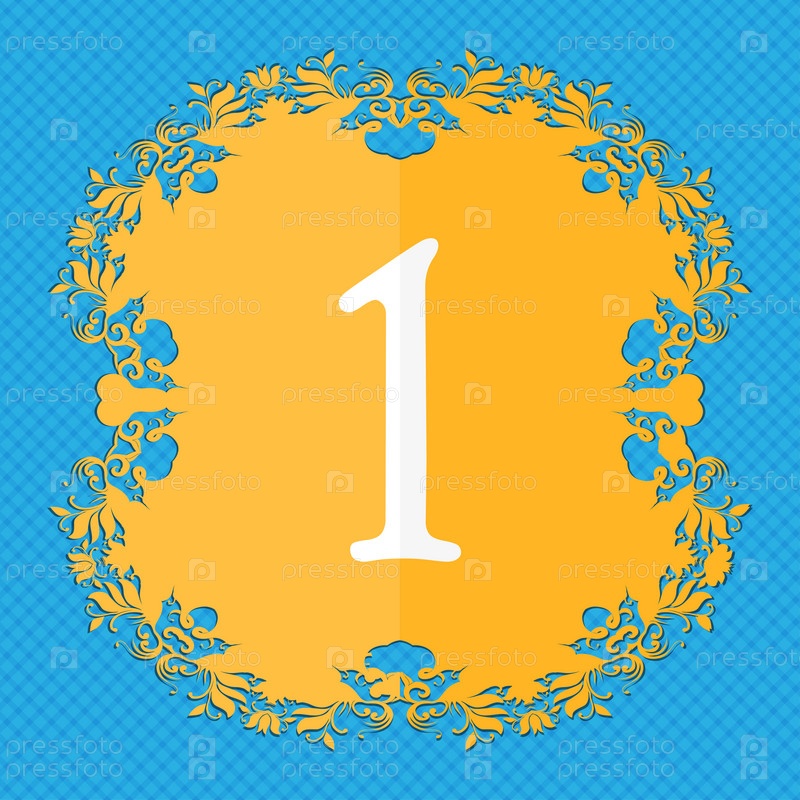 Первое место знак премии. Победитель символ. Один шаг. Цветочный дизайн квартиры на синий абстрактный фон с местом для текста