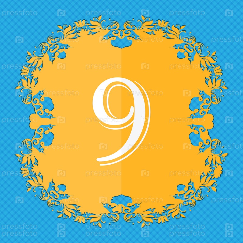 Номер девять значок знак. Цветочный дизайн квартиры на синий абстрактный фон с местом для текста