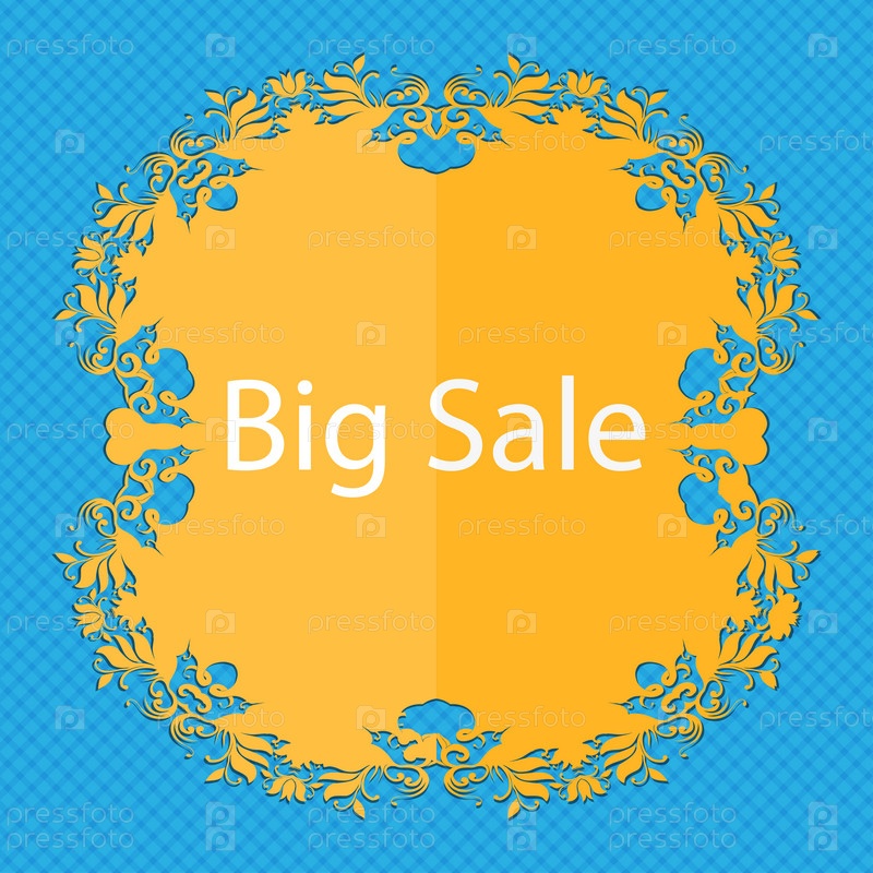 Большие продажи знак значок. Специальное предложение-символ. Цветочный дизайн квартиры на синий абстрактный фон с местом для текста