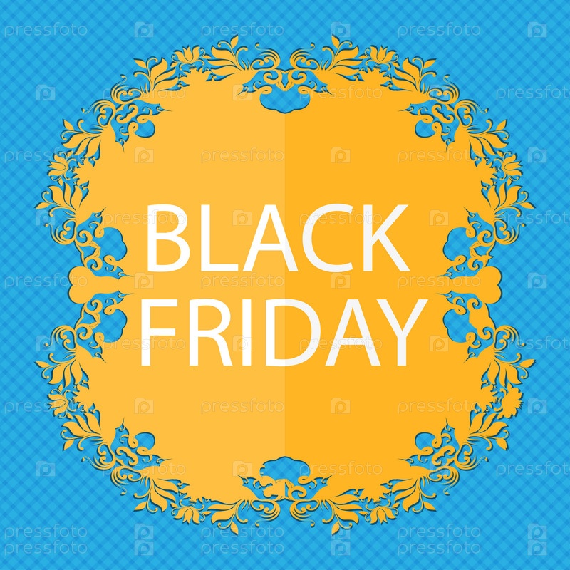 Черная пятница знак значок. Продажа символ. Специальное предложение метка. Цветочный дизайн квартиры на синий абстрактный фон с местом для текста