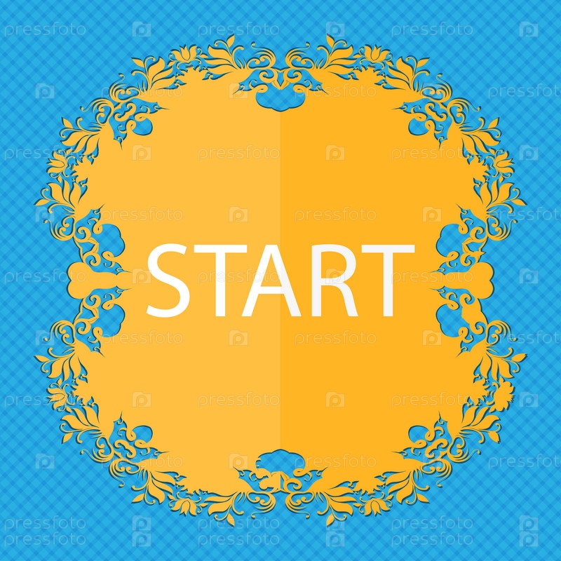 Запустите двигатель знак значок. Цветочный дизайн квартиры на синий абстрактный фон с местом для текста