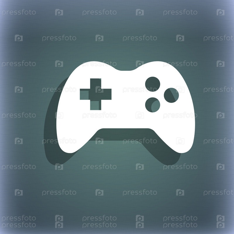Знак иконку джойстика. Видео игры символ. На сине зеленый абстрактный фон с тенью и пространства для вашего текста