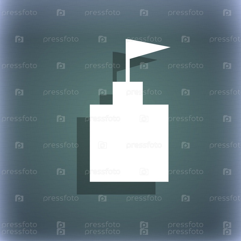 Башня значок. Набор с плоским современные. На сине зеленый абстрактный фон с тенью и пространства для вашего текста