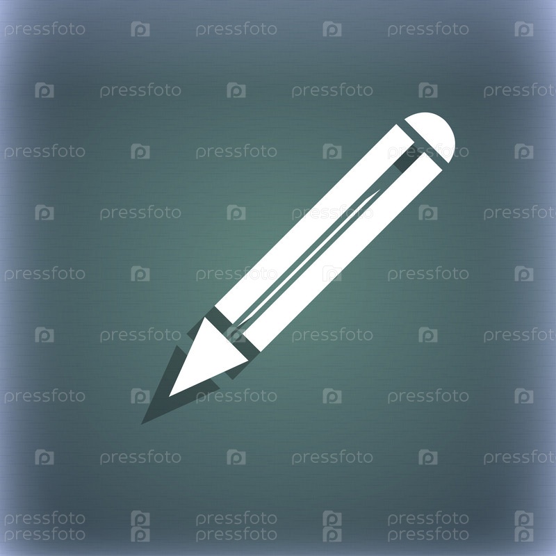 Значок карандаша знак. Редактирование содержимого кнопки. На сине зеленый абстрактный фон с тенью и пространства для вашего текста