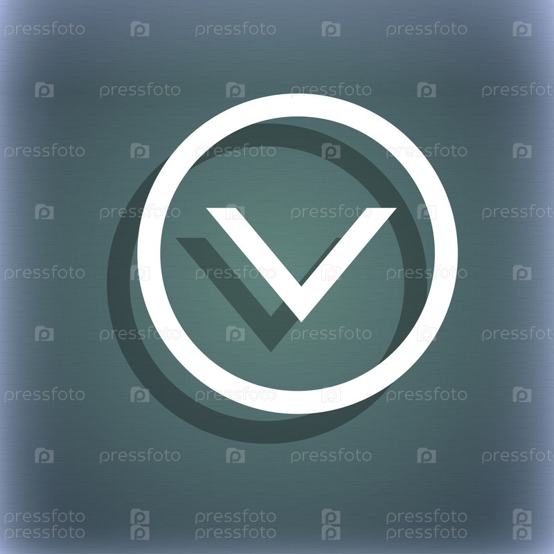 Стрелка вниз, скачать, загрузки, резервное копирование значок символ на сине зеленый абстрактный фон с тенью и пространства для вашего текста