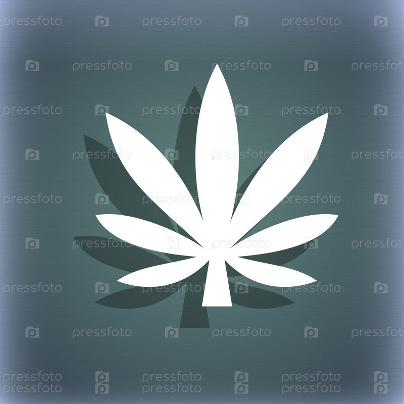 Символ значок листьев конопли на сине зеленый абстрактный фон с тенью и пространства для вашего текста