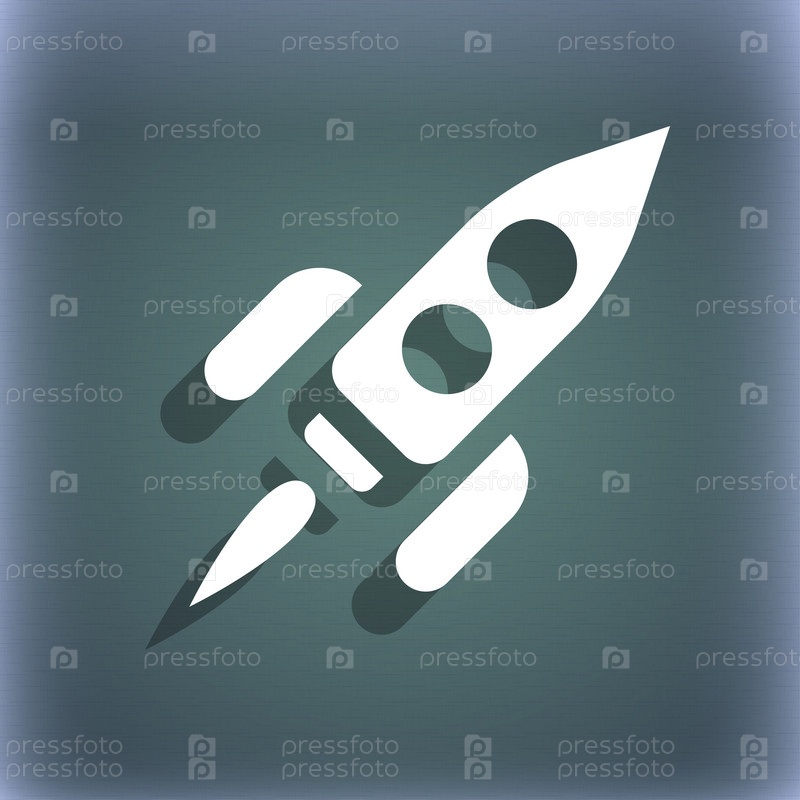 Ракета значок символ на сине зеленый абстрактный фон с тенью и пространства для вашего текста
