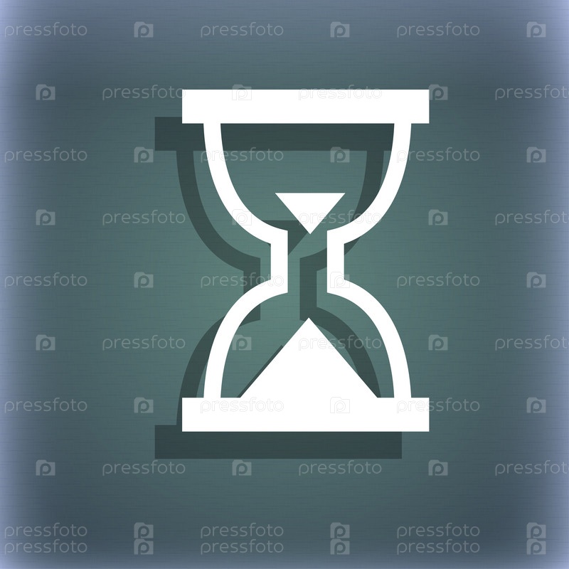 «Песочные часы», песок таймера значок символ на сине зеленый абстрактный фон с тенью и пространства для вашего текста