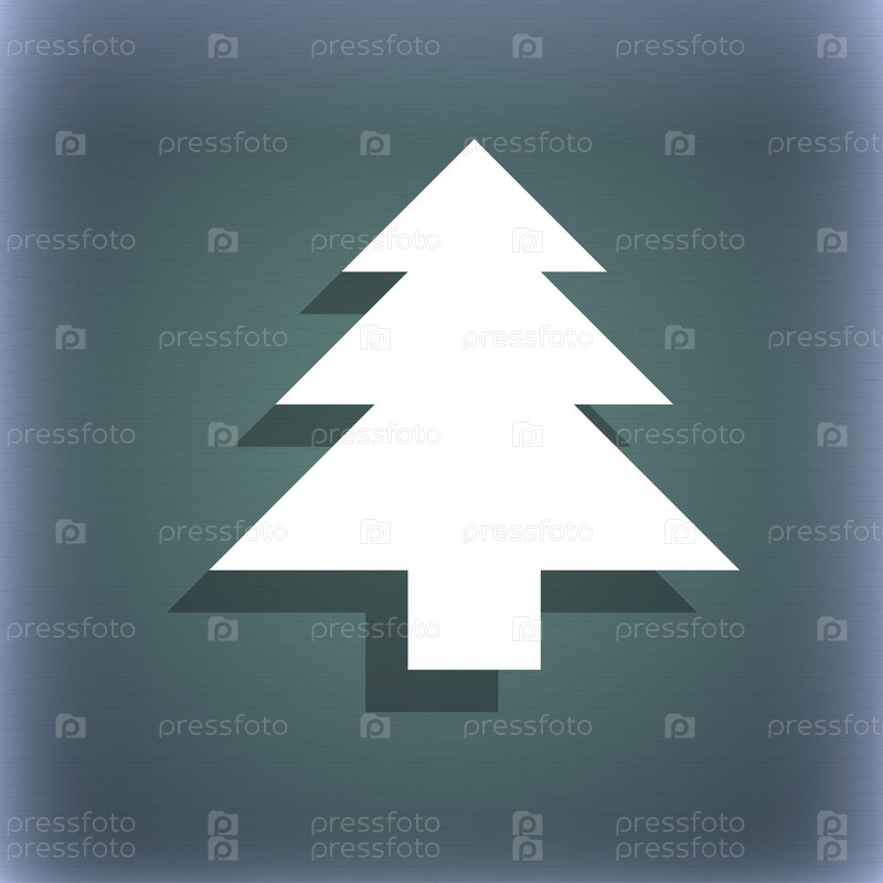 Рождественская елка значок символ на сине зеленый абстрактный фон с тенью и пространства для вашего текста