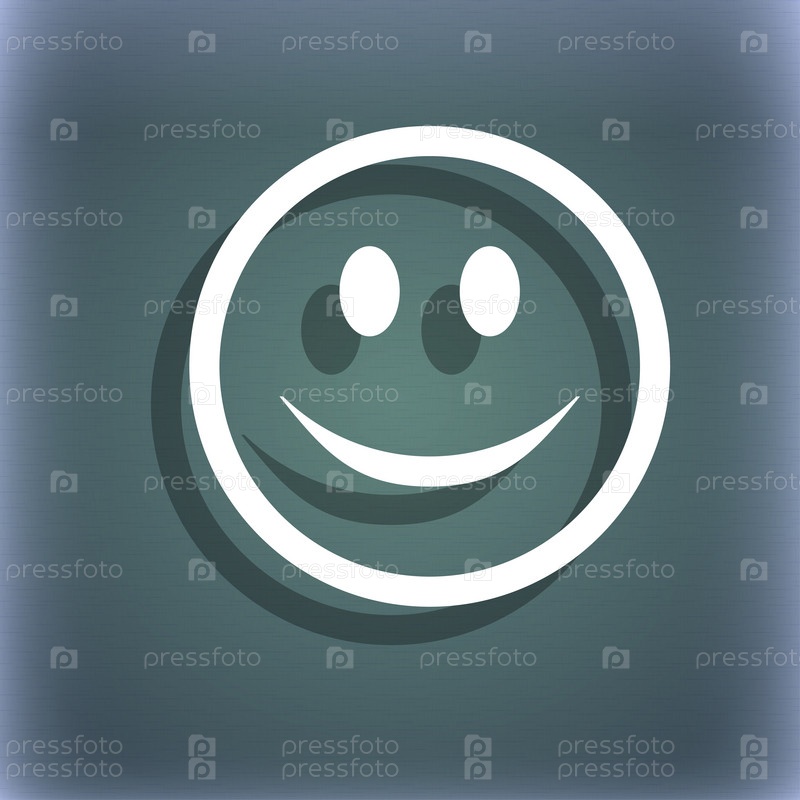 Улыбка, счастливое лицо значок символ на сине зеленый абстрактный фон с тенью и пространства для вашего текста