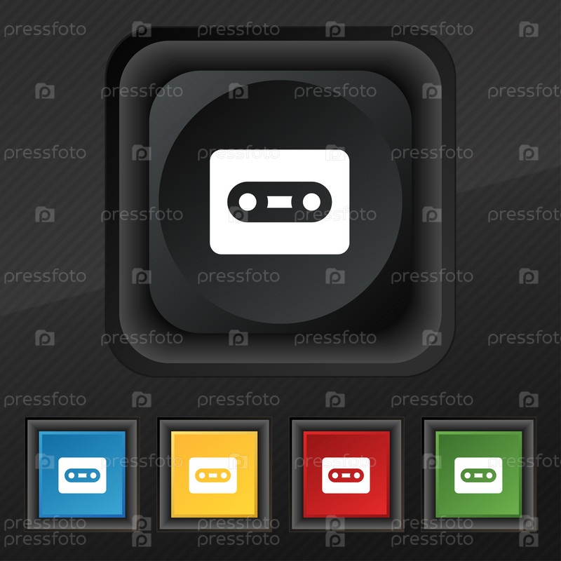 Кассета значок символа. Набор пяти красочные, стильные кнопки на черные текстуры для вашего дизайна