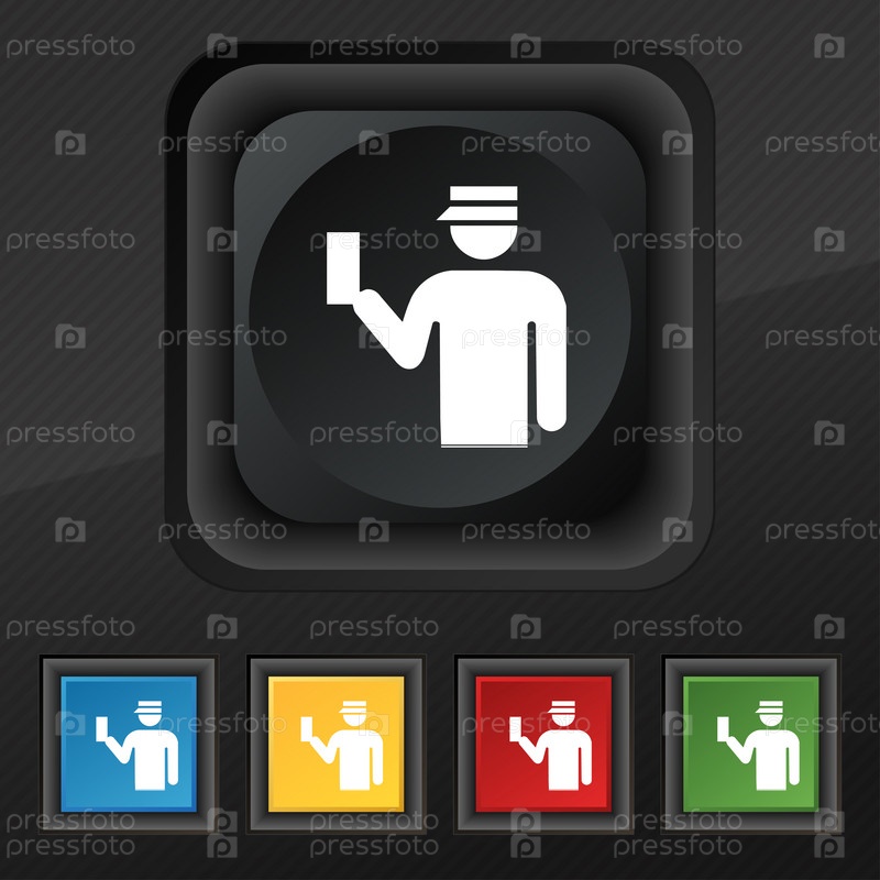 Инспектор значок символа. Набор пяти красочные, стильные кнопки на черные текстуры для вашего дизайна