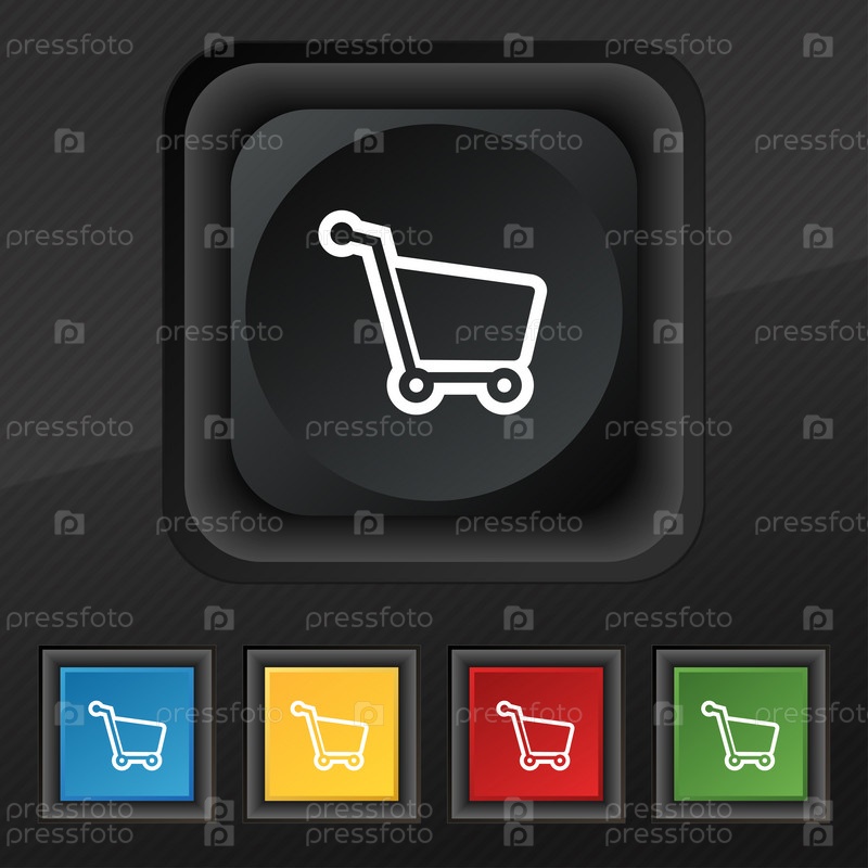 Торговый символ значок Корзина. Набор пяти красочные, стильные кнопки на черные текстуры для вашего дизайна