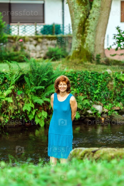 Счастливая молодая женщина на реке