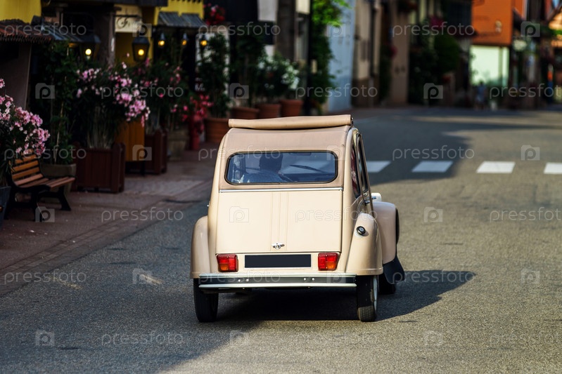 Старинный автомобиль на улице маленькой деревни