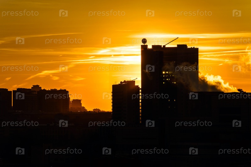 Красивый красочный закат над городом
