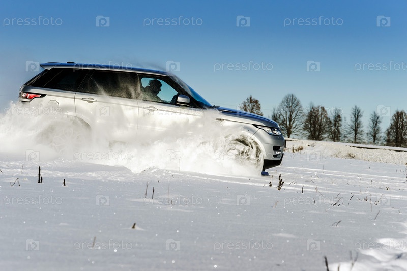 Мощный автомобиль внедорожник 4 x 4, работающий на снежных местах
