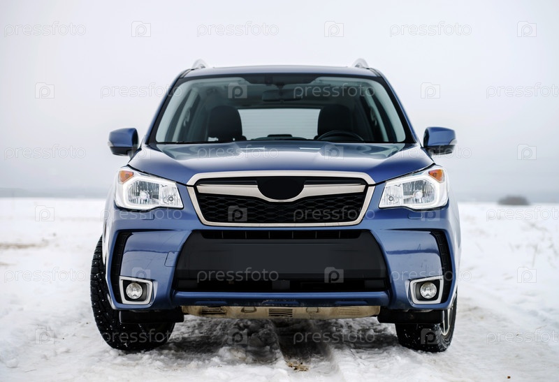 Вид автомобиля мощный внедорожник на Зимний фон