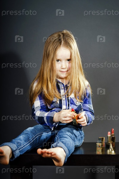 Милая маленькая девочка с матери Косметика
