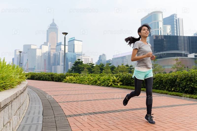 Женщина бежит в городе